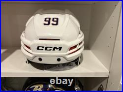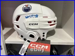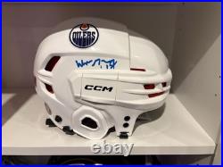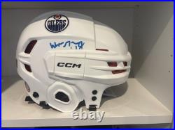 The product is an authentic Edmonton Oilers helmet signed by Wayne Gretzky, one of the greatest hockey players of all time. This collectible item is certified by Professional Sports Authenticator (PSA) to ensure the authenticity of the signature. It is a must-have for any fan or collector of NHL memorabilia, especially those who admire the legendary career of Wayne Gretzky with the Edmonton Oilers.