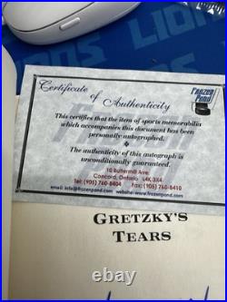This is an autographed book by Wayne Gretzky titled "Gretzky's Tears". It is an original item and has not been reprinted. The book is signed by Wayne Gretzky himself, making it a valuable addition for any fan of hockey and NHL memorabilia.