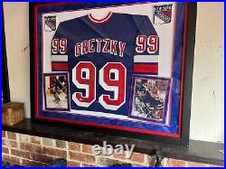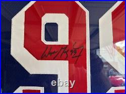Embrace the glory of hockey with this authentic Wayne Gretzky autographed jersey. Framed elegantly, it's a must-have for fans and collectors alike. Celebrating his time with the New York Rangers, this piece of sports history is verified by both Upper Deck and Fanatics Dual Authentication, ensuring its authenticity and value. Crafted in the United States, this jersey signifies the legacy of one of the greatest players to have graced the ice.
