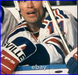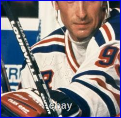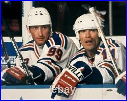 WAYNE GRETZKY + MARK MESSIER SIGNED AUTO AUTOGRAPH 16X20 PHOTO UDA UPPER DECK. Photograph that has been signed by NHL Hall of Famers, Wayne Gretzky and Mark Messier. Signatures are light, but discernable. There is a Upper Deck Authenticated sticker on the photo as well.